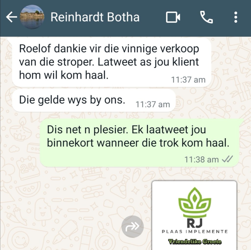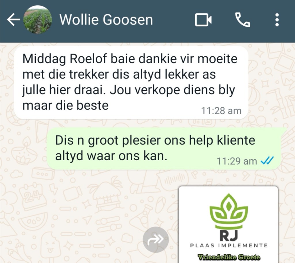 By RJ Plaas Implemente, bemark ons tweedanse landbou toerusting teen mark verwante pryse, landswyd op verskeie sosiale en komunikasie platvorms.